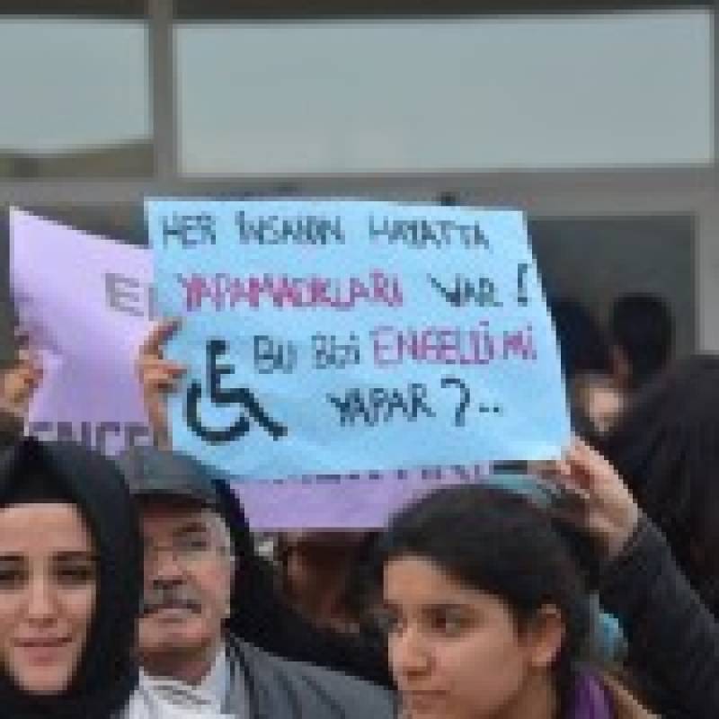 Sosyal Hizmet Bölümü öğrencileri, eğitim konferansın ardından engellilerin sorunlarına farkındalık yaratmak amacıyla Esentepe kampüsünde ‘En büyük engel, sevgisizliktir’ sloganıyla yürüyüş yaptı.