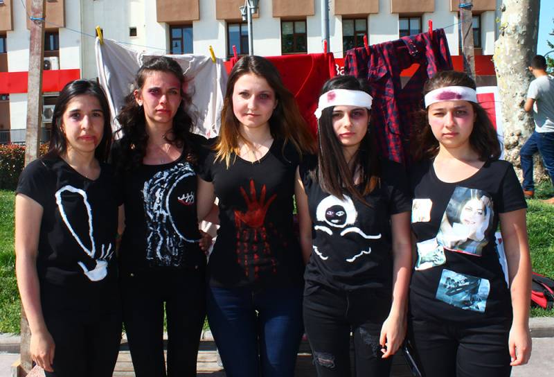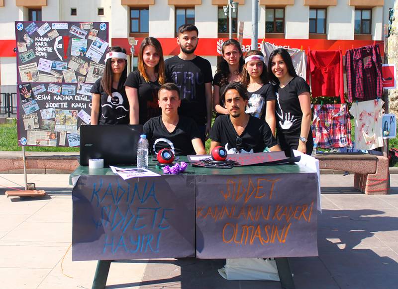 17.04.2016 tarihinde Sakarya Kent Meydanı’nda gerçekleştirilen etkinlikte öğrencilerimiz tarafından kadına yönelik şiddete dikkat çekmek amacıyla stand açıldı, broşür dağıtıldı, halkla röportaj yapıldı, gitar eşliğinde kadına şiddet temalı şarkılar söylendi ve kadına şiddet temalı haberlerden oluşan bir pano oluşturuldu. Ayrıca öğrencilerimiz kendilerine makyaj yaparak ve parçalanmış kıyafetler giyerek şiddetin fiziksel boyutuna dikkat çekmeyi amaçladılar. Halk tarafından yoğun ilgi gören etkinlik gün boyu devam etti.