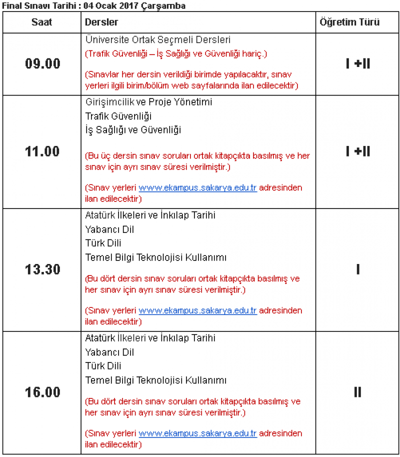 Üniversite Ortak Seçmeli/Zorunlu Derslerinin sınav programı ekteki resimlerde mevcuttur. Ayrıca;